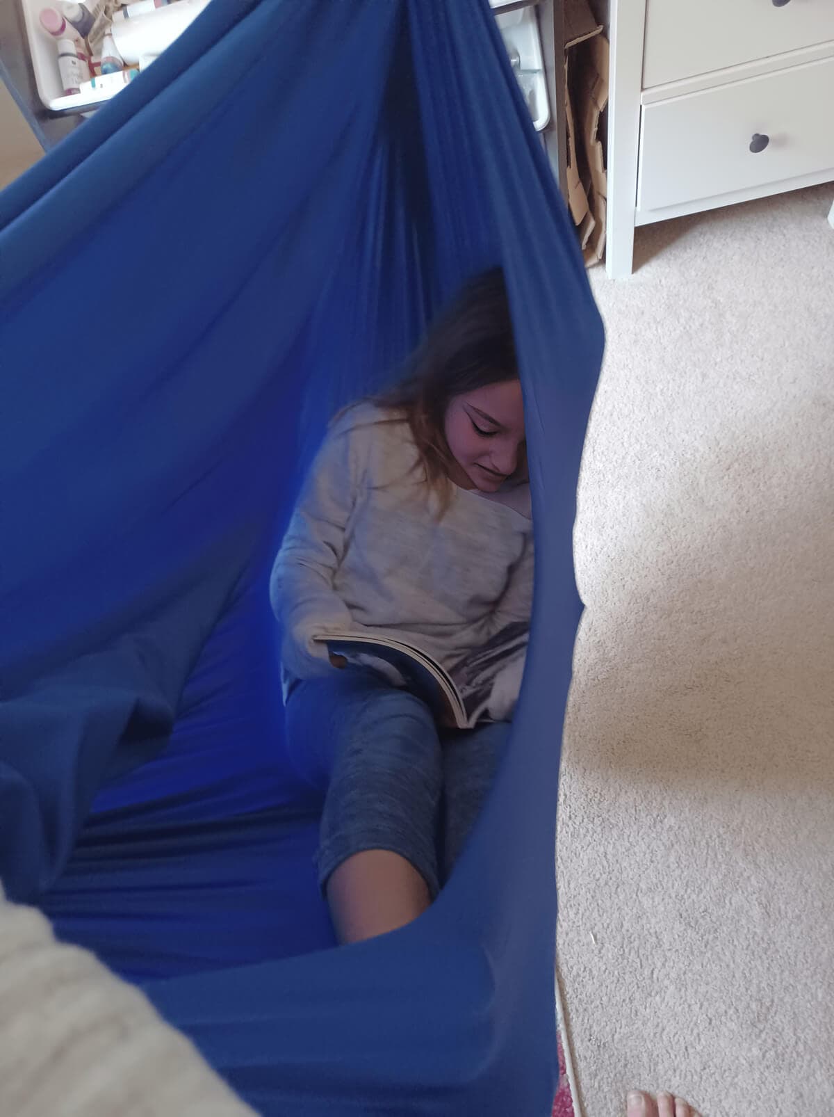 Especially for kids with autism, ADHD and SPD, but fantastic fun for all kids, our sensory swing is designed to offer constant sensory input. The compression to a child’s joints and muscles from the swing gives a hug-like effect to your child, which calms the nervous system, and makes your child feel more secure and relaxed. In addition, the swinging and spinning motion is soothing to the senses and just plain fun!!